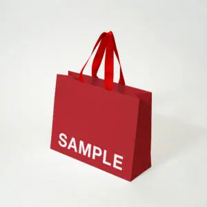 大きなロゴと、鮮やかなレッドがインパクト大な紙袋 |