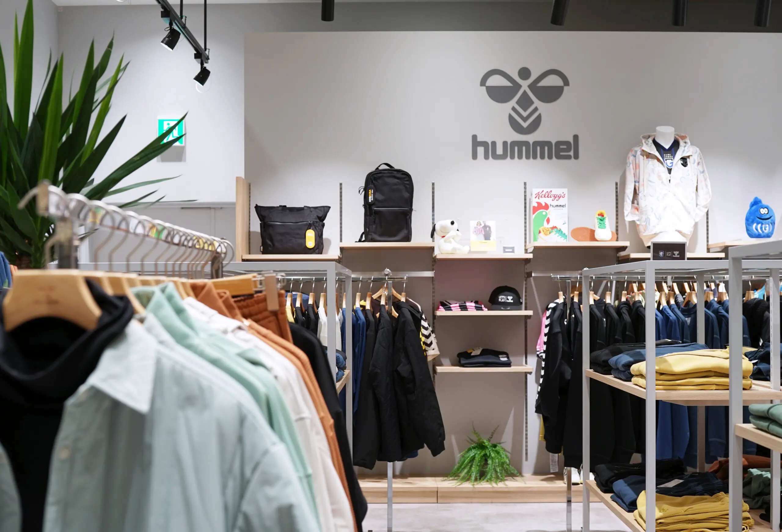 デンマークのスポーツブランド「hummel(ヒュンメル)」は、サッカーやハンドボール、バスケットボール、バレーボールなどのチームスポーツアイテムのほか、北欧テイストあふれるスニーカーやライフスタイルウェアを提供しています。このららぽーとEXPOCITYにあるヒュンメルショップは、2024年8月にオープンしたフルプライスショップです。