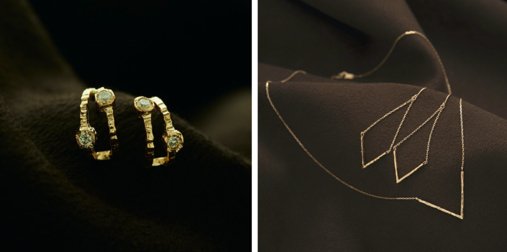 CASUCAというブランド名は、スペイン語の「あばら屋」という言葉に、日本語の「かすか」の音を重ね合わせたもの。シンプルなネックレスチェーンに少しだけカットを足して光の反射を多くしたり、モチーフにアブストラクトな傷をつけて、キラキラとした輝きを放つように工夫したり…。“人はたくさんの経験をして、身も心も傷を負い、皺も寄ってくる。そのすべてをチャーミングに見せ、変えていくのはその人自信のチカラ”という安野の思いが、ひとつひとつのジュエリーデザインに投影されています。この「傷の輝き」こそ、CASUCAの特徴なんです。
