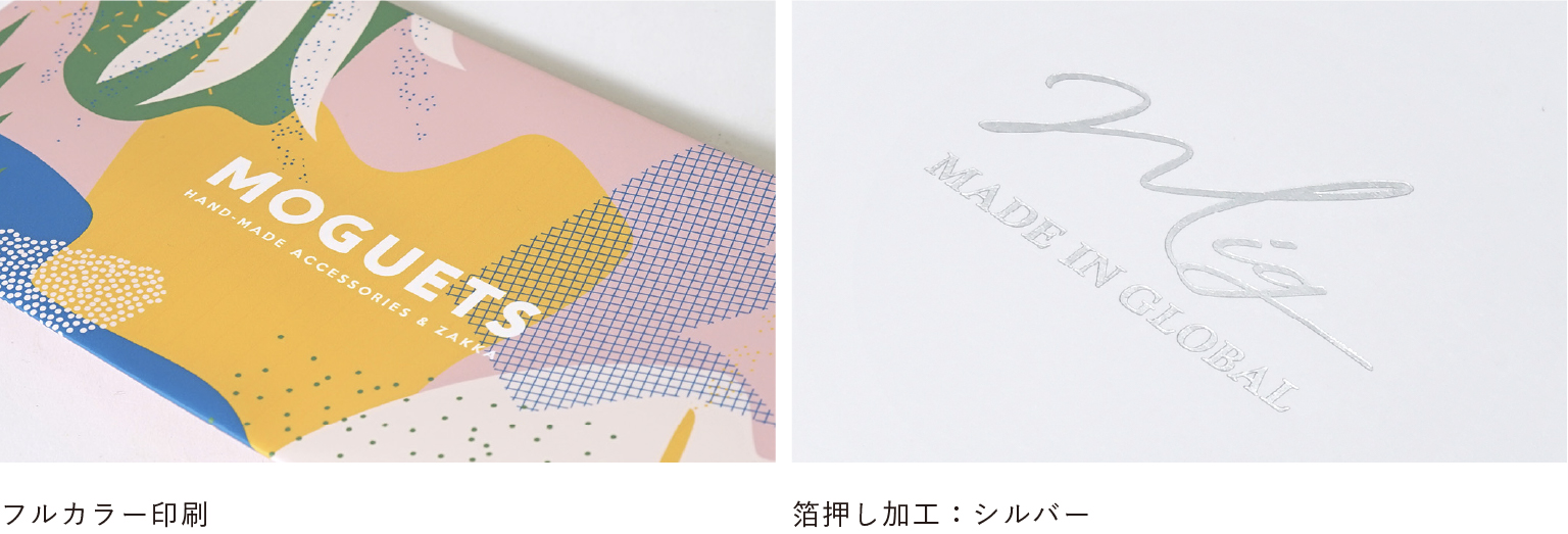 硬め・柔らかめなど質感の異なる用紙もご用意し、商品の魅力を引き立てるセレクトが可能。 ◯ こだわりを叶えるオプション
