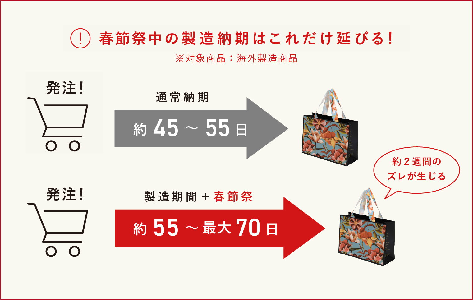 【早めの発注で安心】「春節祭」の影響を避けるための納品スケジュールのご案内