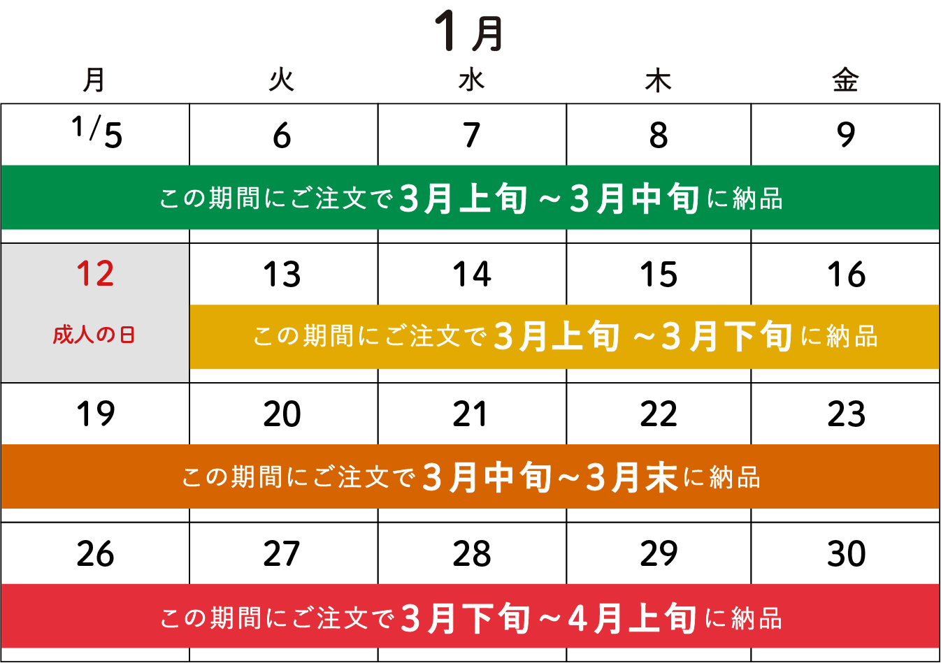 です。 カレンダーで納品時期をチェック