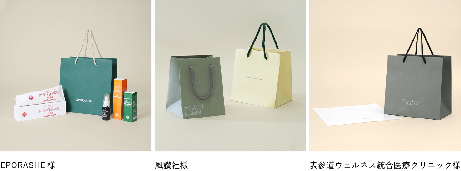8,000通り以上の組み合わせから、ブランドに合った紙袋をお選びいただけます。