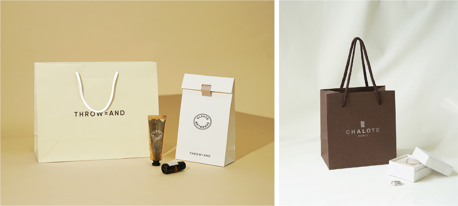 ご紹介した「スタンダード紙袋」は、ボディ・ロゴ・ハンドルの色を選ぶだけで、ブランドに合った紙袋が作れるのが魅力です。あらかじめ仕様を決めているため、「選択肢が多すぎて決められない」といった状態になりにくく、スムーズに紙袋づくりを進めていただけます。また、上品な仕上がりになるよう仕様を選定しているため、ブランドの定番紙袋として、長くお使いいただけます。