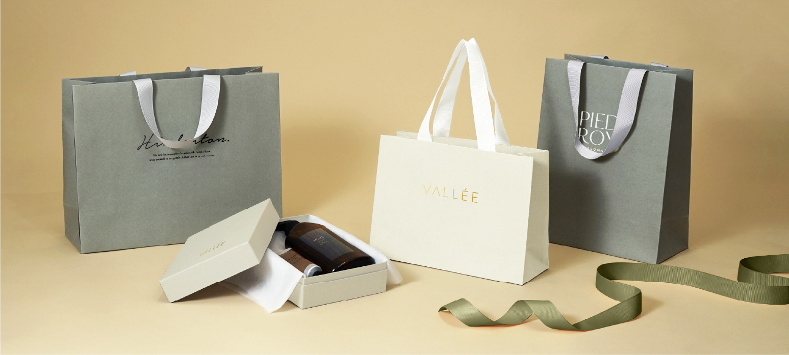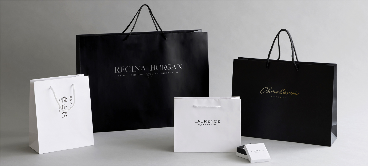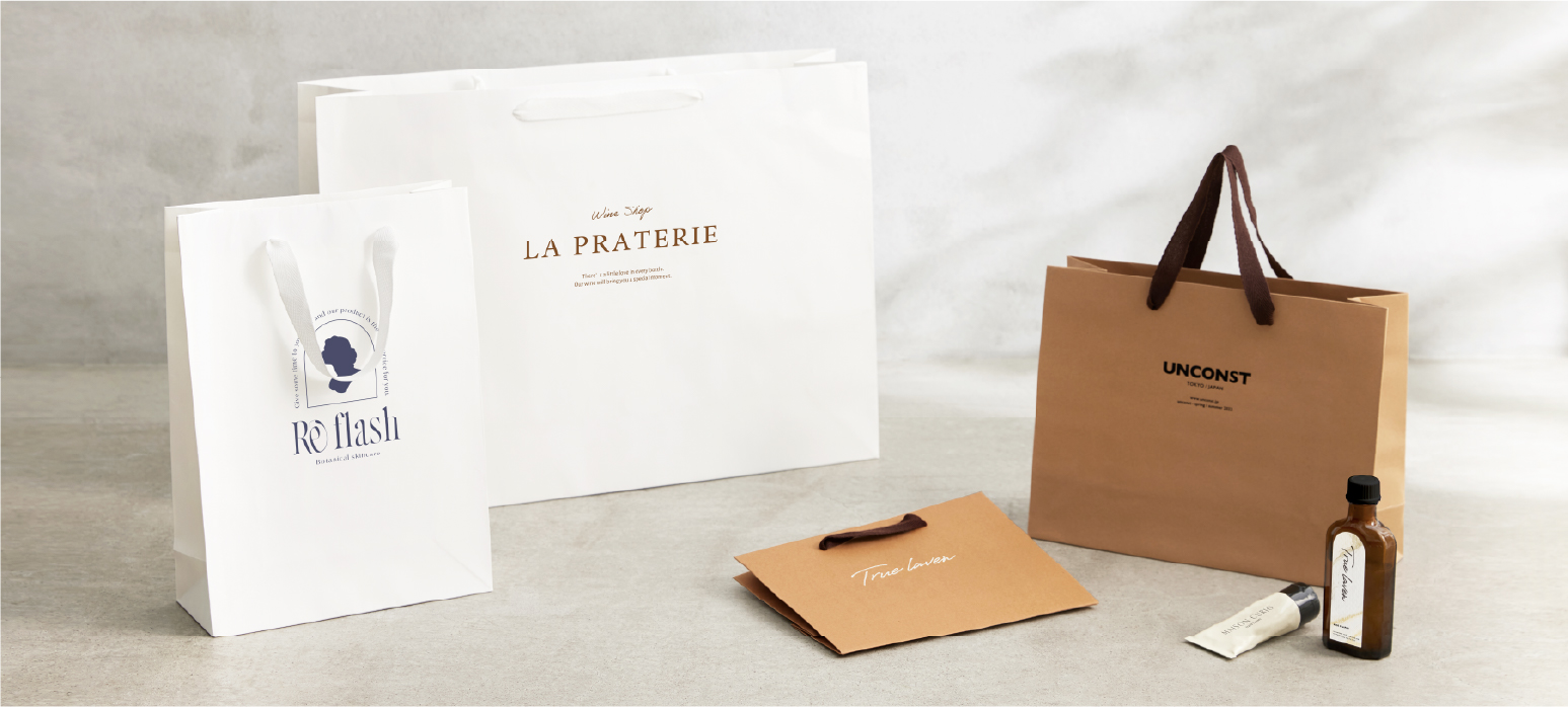 ワンカラーで統一された「モノトーン紙袋」は、ブランドのロゴやメッセージを引き立て、業種やスタイルを問わず自然と馴染みます。性別を問わず使いやすい点も、大きな魅力のひとつです。 モノトーン紙袋 商品ページ