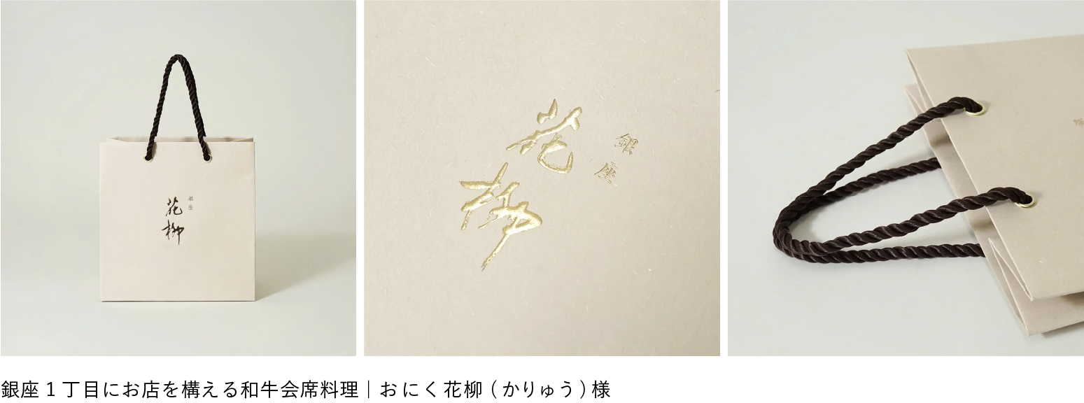 事例1:和紙風の質感が伝統感を表す割烹店の紙袋