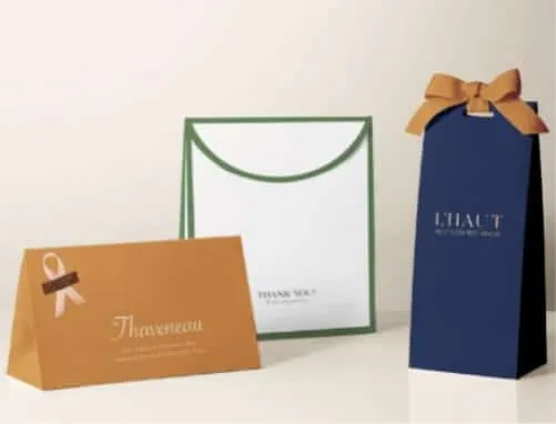 ロゴを目立たせる箔押しは、ハイブランドの紙袋でも特に人気があります。プレゼントバッグ・封筒に箔押しできるメーカーは少ないのでロゴを箔押しにすれば目立つこと間違いなしでしょう。