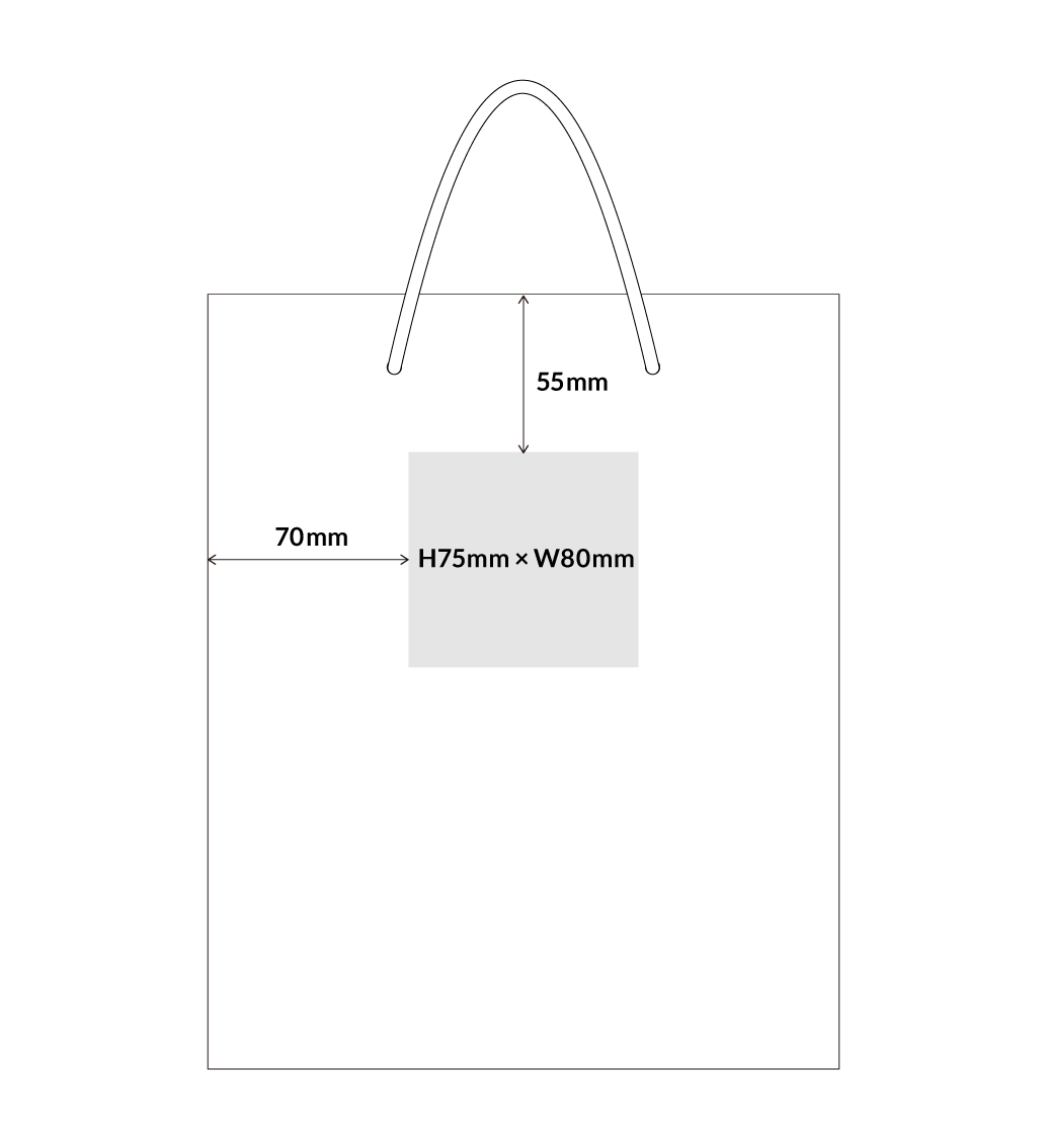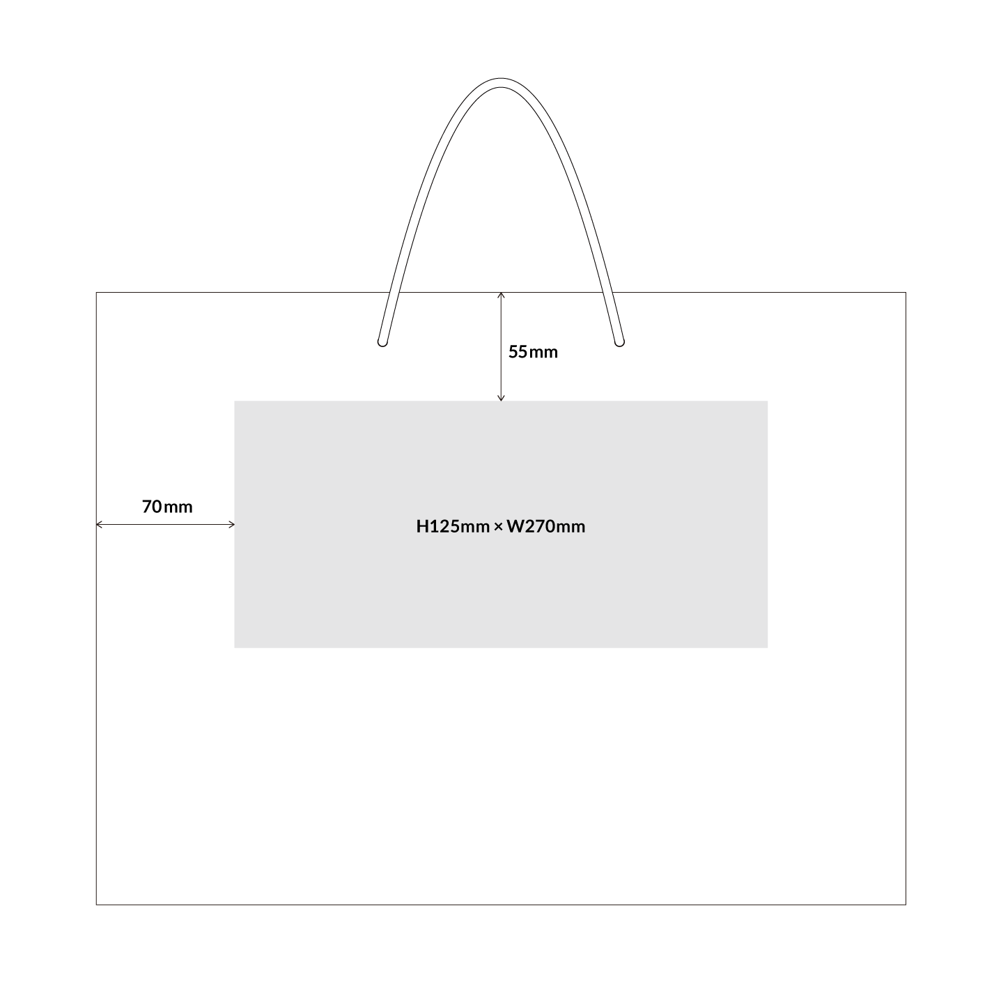 ロゴの印字範囲がありますのでテンプレートをご確認ください。ロゴは片面印刷、サイズは100c㎡内に収めてください。 塗りつぶしの大きなデザインや、繊細なデザインはモノトーン紙袋のでは再現が難しい場合がございます。