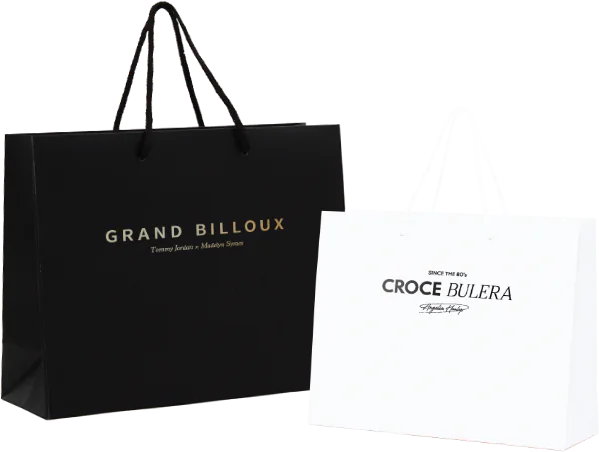業種や性別を問わず常に人気のブラックとホワイトの紙袋です。サイズ・ロゴのカラーを選ぶだけで、高級感のあるオリジナル紙袋が仕上がります。