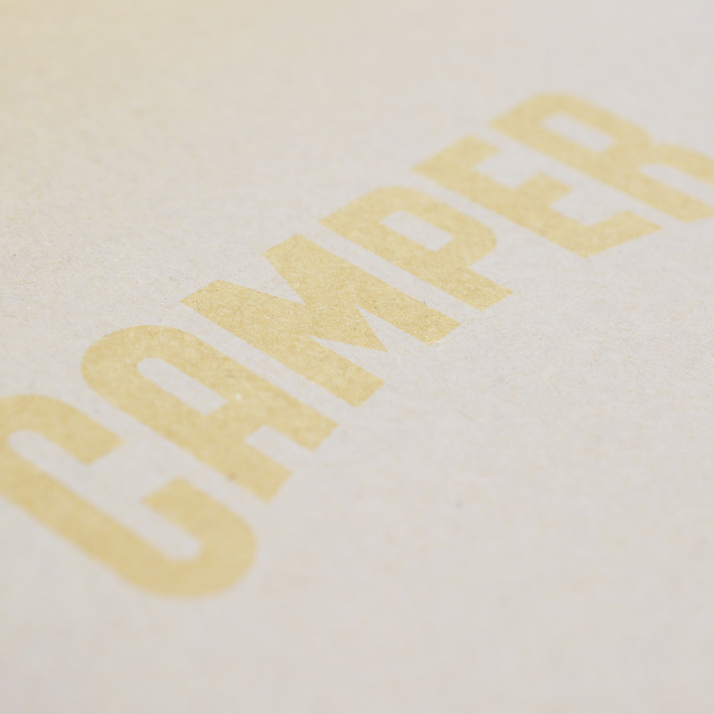ロゴ部分は表面に施しているグラデーション印刷から除外することで表現されています。