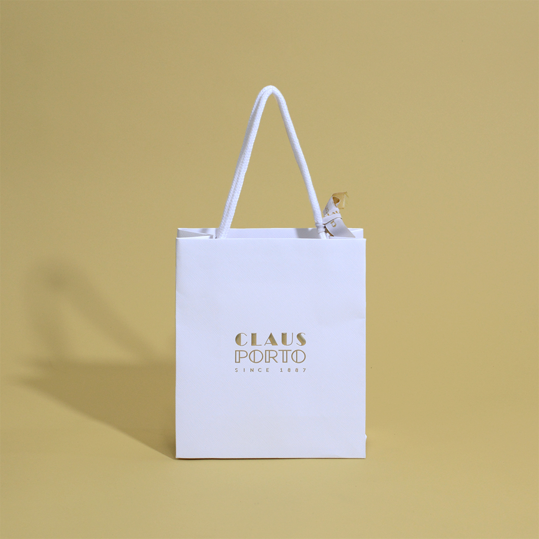 異素材ハンドルに、全面箔押し!特殊仕様が詰まった紙袋