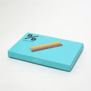 上蓋の内側に印刷されたロゴや、商品が入った包みのデザインもおしゃれですね。