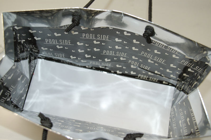 キラキラで元気いっぱいのショップ袋2012年08月09日 こんにちはベリービーの芦谷です。 今日は蒸着紙を使用した、とっても夏らしい元気のある紙袋をご紹介します。 大胆な「唇」のデザインが素敵ですね。 さらに浮きだしエンボスにより、ロゴマークと唇に立体感を与えています。 手提げ紐には目の細かいブライトスピンドルを使用しています。 内側にはロゴマークとかわいいハート。内側にもグロスPPが貼られて、高級感もタップリです。