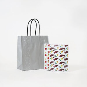 光沢を帯びたシルバーが高級感を演出し、落ち着いた紙袋の印象を引き締めています!