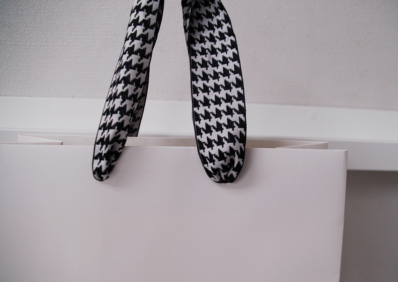 千鳥格子のハンドルが素敵なショップ袋2012年10月26日 こんにちは、ベリービー辻です。 今日は千鳥格子のハンドルがすてきな ショップ袋をご紹介します。 太めの柄入りリボンがかわいいですね! ボディはマットPPです。 紙が厚めなのでしっかりした印象です。 上品なイラストと千鳥格子のバランスが 最高なステキなショップ袋ですね!!